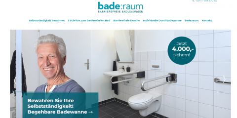 Profitieren auch Sie von der Förderung der Pflegekassen. Mit Ihrem Experten Claudio Holzammer von bade:raum an Ihrer Hand verläuft der Umbau innerhalb weniger Tage. Dank spezieller Staubtür ist der Rest der Wohnung vor nervigem Baustaub sicher. Informieren Sie sich jetzt zu den attraktiven Leistungen für barrierefreie Bäder: