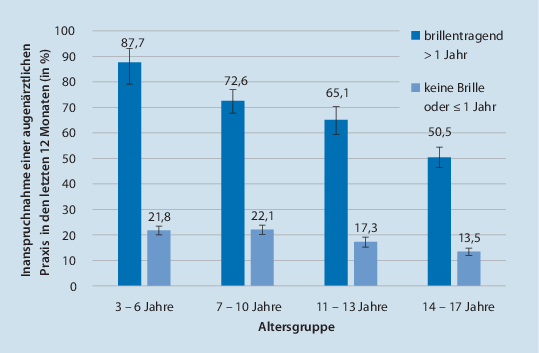 | Altersgruppe | Brillenträger (>1 Jahr) | Keine Brille oder ≤ 1 Jahr |